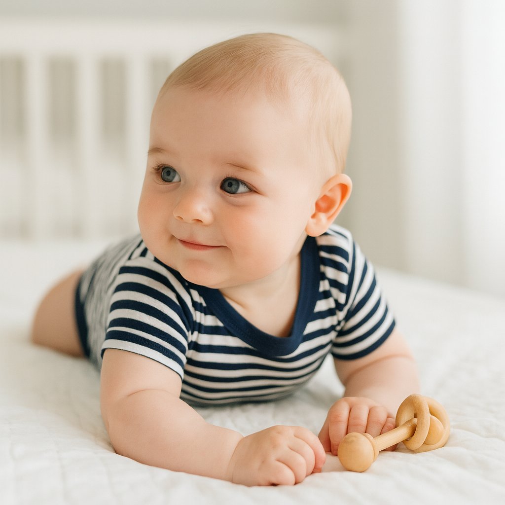 So fühlt sich Alltag entspannter an: Der kurzärmelige Babybody von Schnizler in blau/grau schmiegt sich dank 100% Baumwolle weich an die zarte Babyhaut. Der amerikanische Halsausschnitt macht das Überziehen super einfach, Druckknöpfe im Beinausschnitt erleichtern das schnelle Wickeln. Ein hochwertiges Basic für die Baby-Erstausstattung – pflegeleicht, formstabil und jeden Tag einsatzbereit.