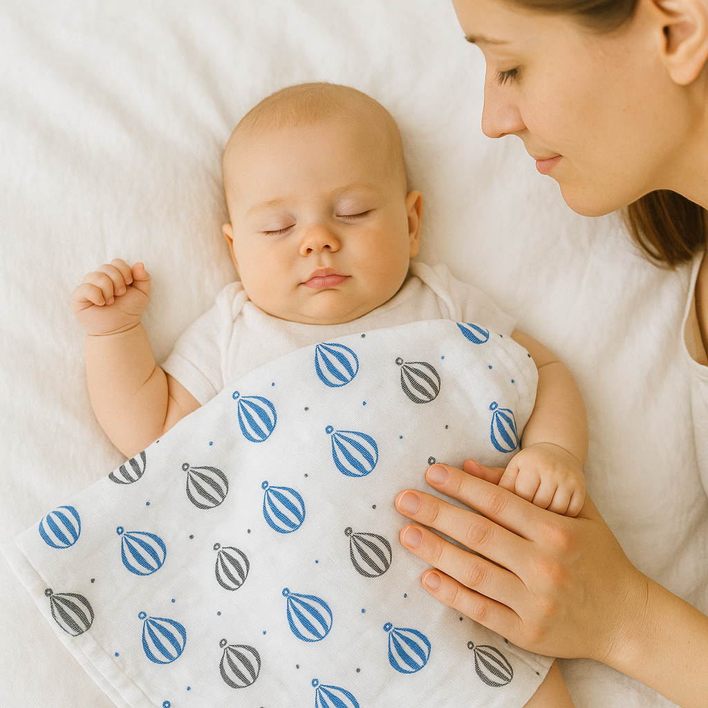 Tipp: Ideal: ein Tuch in der Wickeltasche, eines am Wickelplatz – so bist du unterwegs und zuhause vorbereitet.
