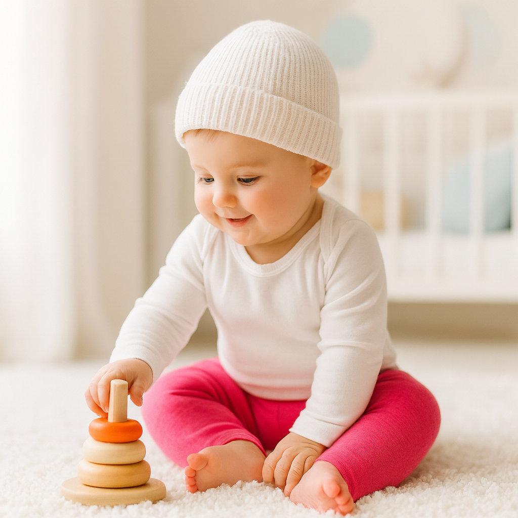 Bequeme, unifarbene Babyleggings mit elastischem Komfortbund und leichtem Stretch – ideal für Alltag, Krabbeln und Kinderwagen.